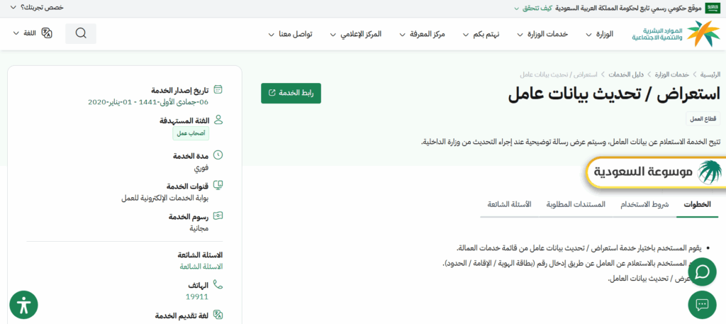 - الذهاب إلى خدمة استعراض أو تحديث بيانات عامل “من هنا“.