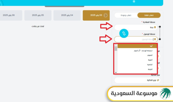 - تحديد مدينة الوصول من قائمة محطة الوصول.